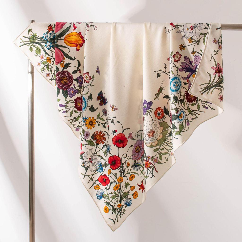 Eșarfă tip snood din lână mătăsoasă cu imprimeu floral față-verso pentru femei - Șal elegant, luxos, ușor