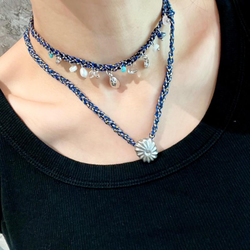 Retro Ethnic Seashell & Crystal Pearl Woven Rope Tassel Choker