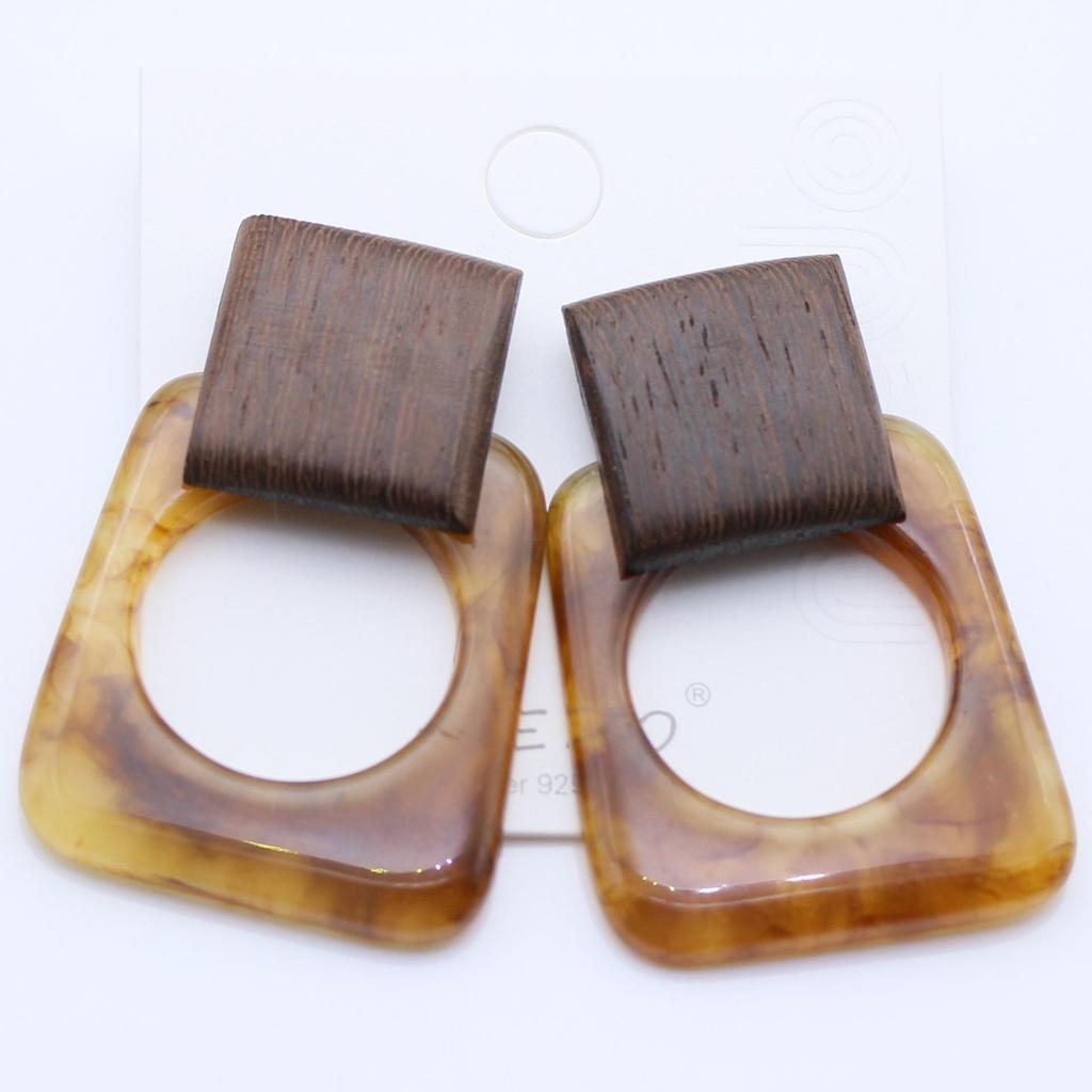 Retro Geometric Silver & Wood Dangle Earrings with Irregular Texture