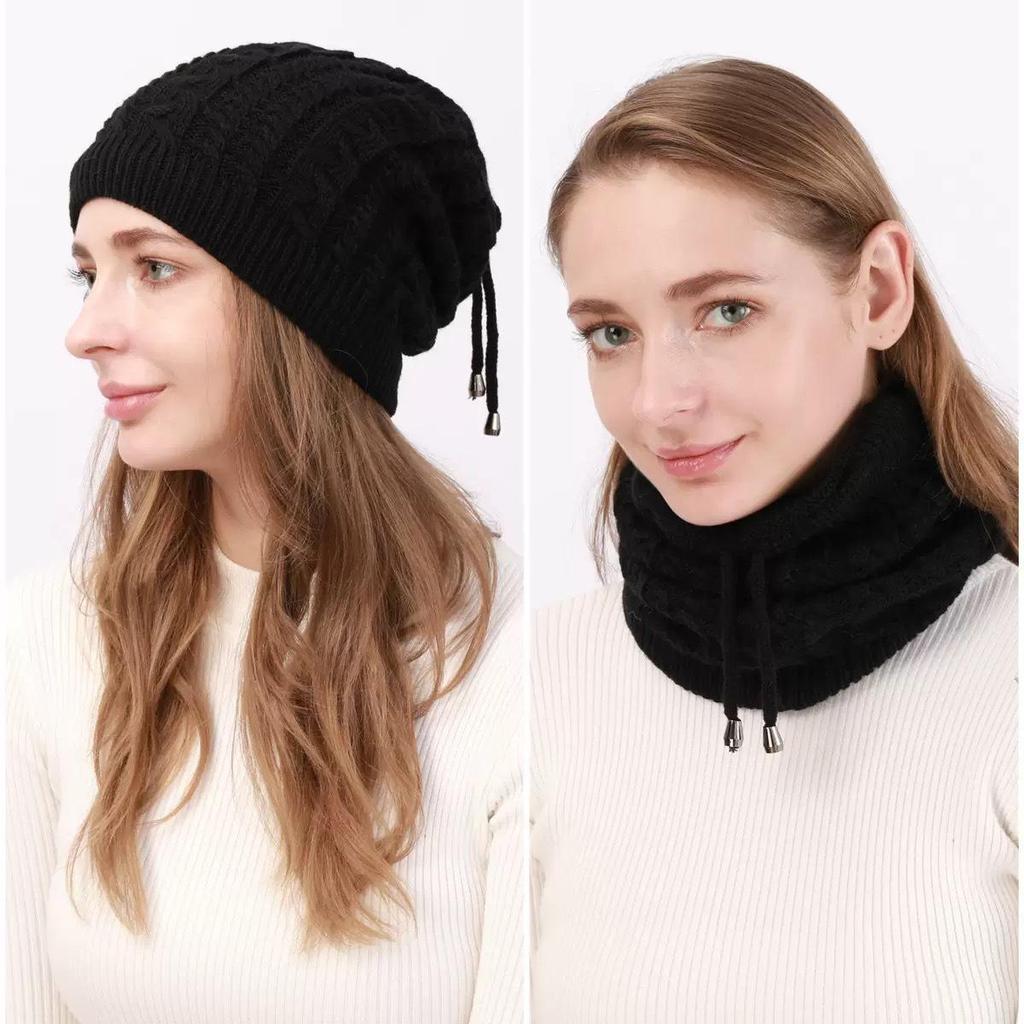 Fall/Winter Women's Double Wear Drawstring Knitted Ponytail Hat with Deer Plush Fabric