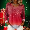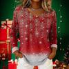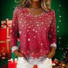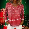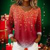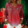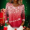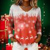 Top casual de damă cu mânecă lungă și decolteu în V, cu imprimeu de Crăciun