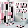 4 buc Seturi Perdea de Duș Cu Perdea de Duș și Covoare Covor Capac Toaletă Covoraș în Formă de U și Covoraș de Baie Set Baie Cu 12 Cârlige