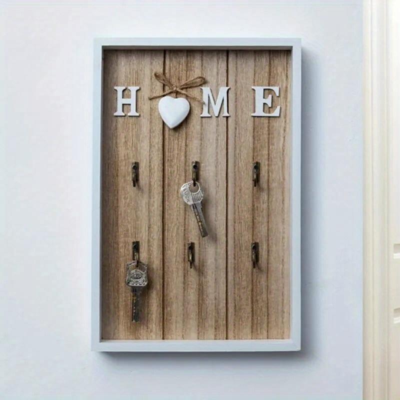 1 buc. Tablă cu cârlige pentru chei din lemn și metal, Decor de perete pentru casă, Raft de depozitare pentru intrarea în living