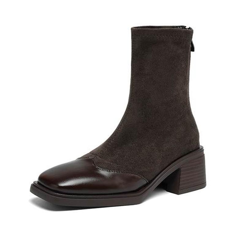 Krazing Pot Microfiber Flock Winter Square Toe Modern Size 33 Boots Size 43 Zipper KPOP Style Fashion Stretch Ankle Boots