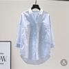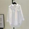 Femei cămașă casual cu buzunar dublu față scurt spate lung cămașă albă femei vrac literar BF vânt cămașă casual temperament maree elegant la modă top
