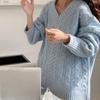 V Collar Lazy Wind Sweater Female Fall and Winter Set Head Loose Outerwear Blouse Thickened Twist Knit Sweater Comfortable Versatile Fashion