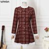 Caracteristici: Rochie plisată cu guler frunză de lotus, mâneci lungi, carouri cu nasturi, culoare contrastantă, buzunar fals