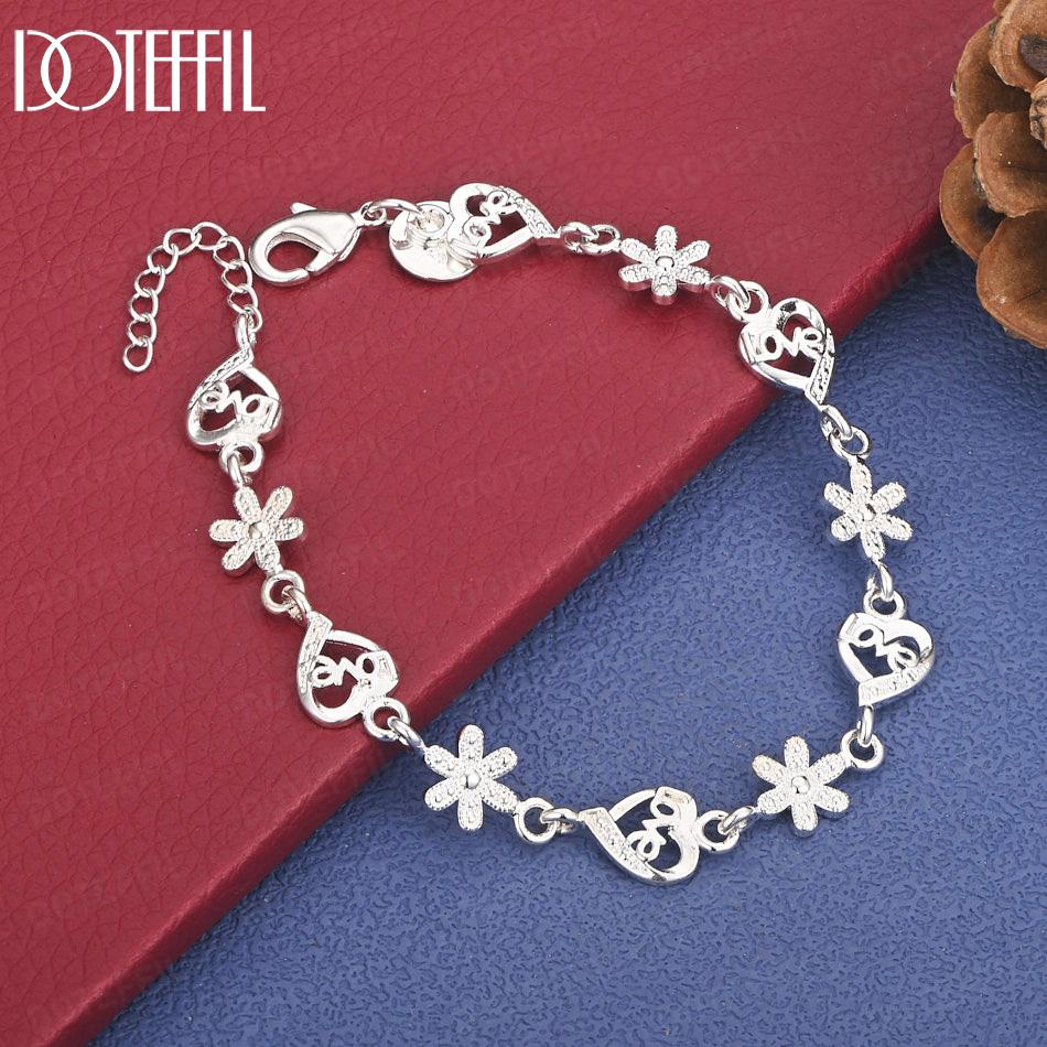 925 Sterling Silver Snowflake Heart Bracelet Fashion Wedding Gift Jewelry
