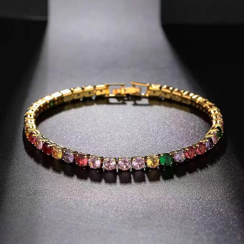 Brățară de tenis colorată cu zirconiu și mărgele de cristal - Cadou Qixi de lux ușor