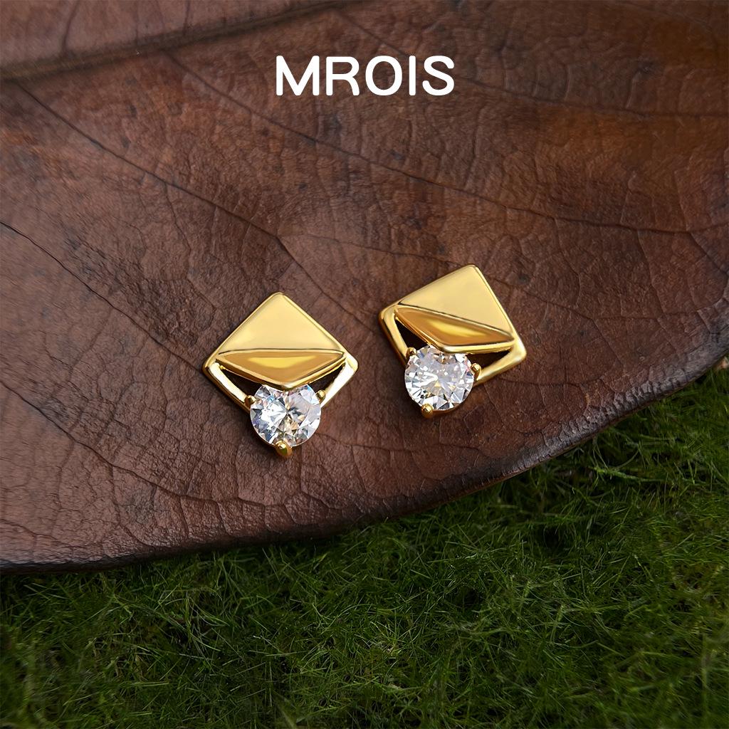 Cercei pătrați geometrici cu zirconiu, placați cu aur de 18K - Stil de designer, lux ușor