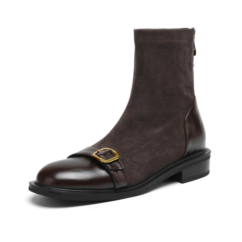 Krazing Po Microfiber Flock Winter Round Toe Size 33 Chelsea Boots Size 43 Zipper Metal Buckle Low Heels Ankle Boots
