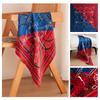 Elegant Autumn Red & Blue Patchwork Mulberry Silk Scarf - Versatile Women's Fashion Accessory