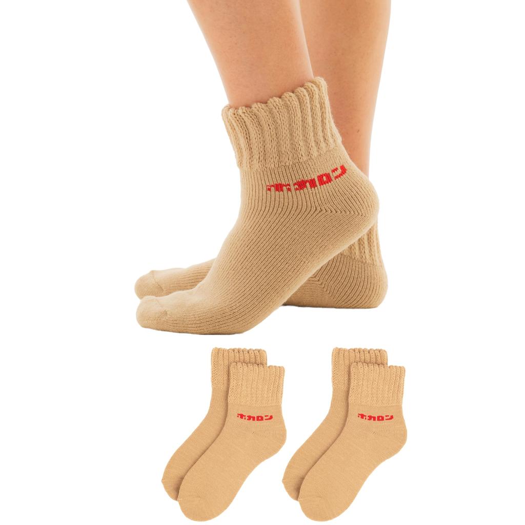 Hokaron Warm Full Round Sizes HKM03 Socks, Fleece-Lined, Pile, Thick, Toe, Short, Ankle, 24-26cm, 2-Pair, Unisex, Beige, (2-Pair Beige)
