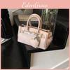 This small, rectangular platinum-style handbag features a sleek urban design, suitable for daily commuting and casual outings. Made of durable PU material, it measures 23*14*10cm, with a medium-soft hardness and a single shoulder strap for easy carry. The bag includes a secure lock clasp, car stitching details, and a synthetic lining with a dedicated phone pocket. Easy to clean with a damp cloth, it complements modern office or city wear.