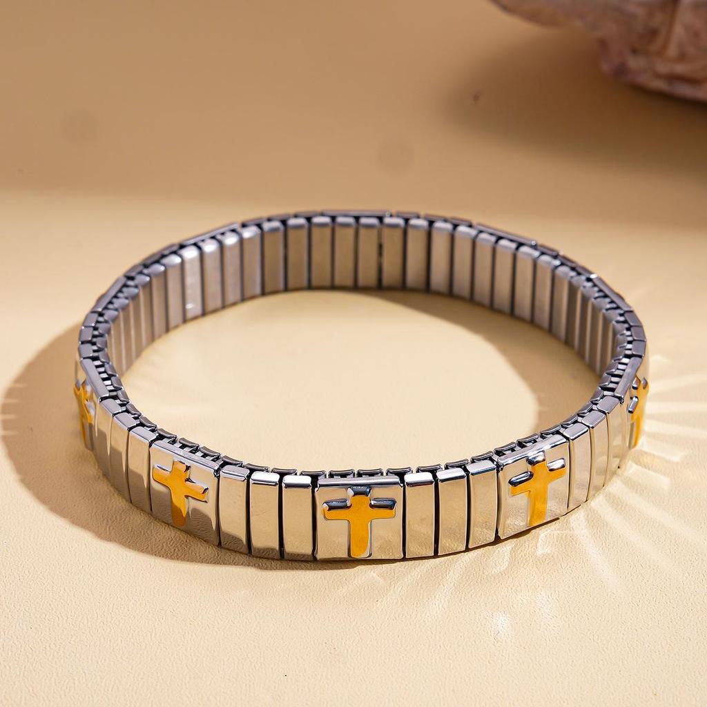 Brățară Elastică cu Nituri Geometrice în Formă de Cruce din Oțel Inoxidabil pentru Femei