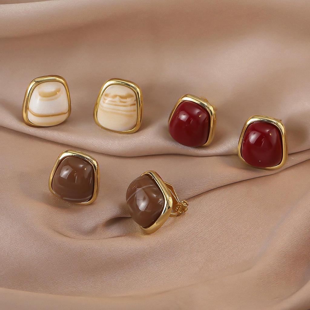 Vintage Burgundy Geometric Clip-On Earrings | Eco-Friendly & Elegant French Minimalist Style