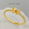 Gold-Plated Ruby Diamond Butterfly Bangle Bracelet - Women's Luxury Fashion Jewelry