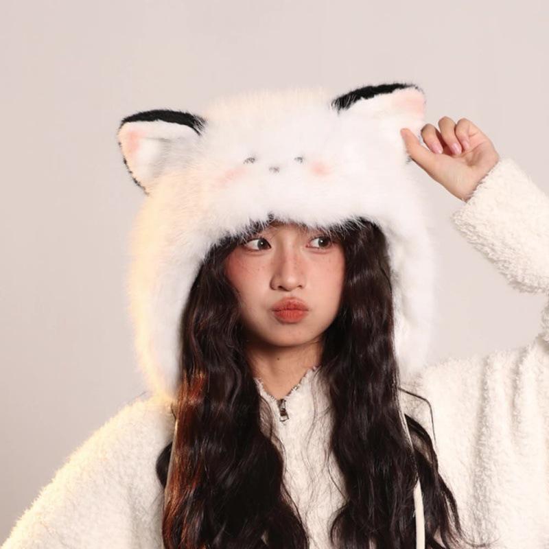 Women's Winter Fleece-Lined Cat Plush Hat for Outdoor & Cycling