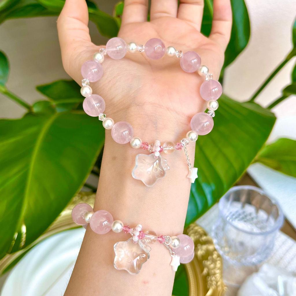 Original Design 12mm Natural Rose Quartz Peach Blossom Star Beaded Bracelet