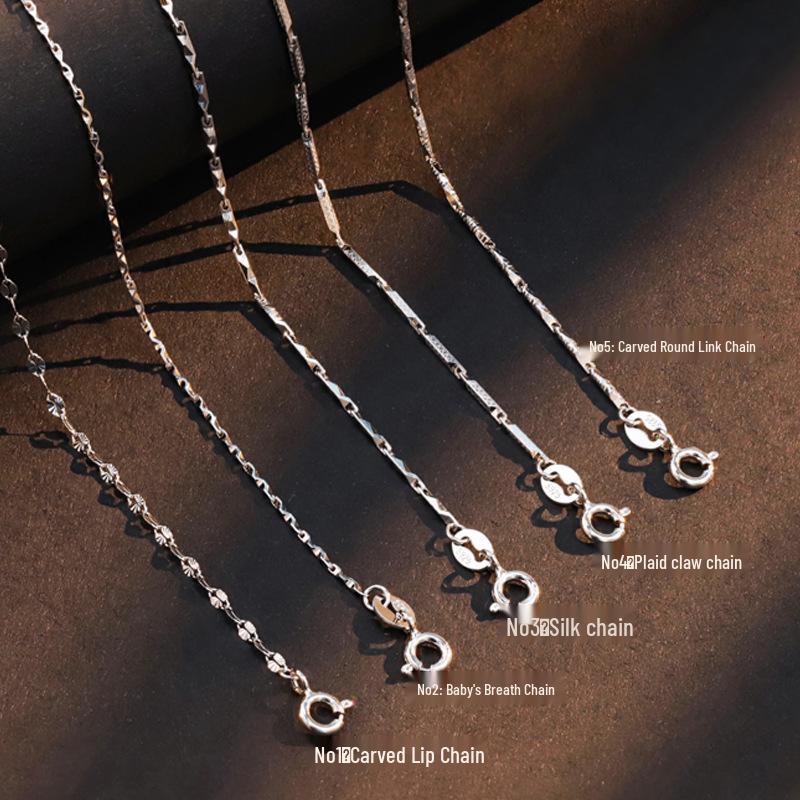 Colier din Argint Sterling S925 Stil Coreean: Lanț Rotund cu Verigi Sculptate cu Textură de Mătase, Design Gingham, Accente Cer Înstelat, Lanț Simplu pentru Osul Gulerului