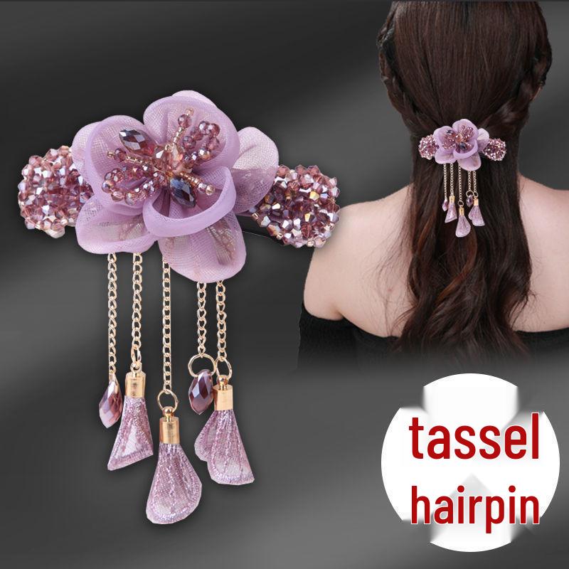 Acrylic Butterfly Tassel Hair Clip - Retro Flower Top & Ponytail Spring Clip