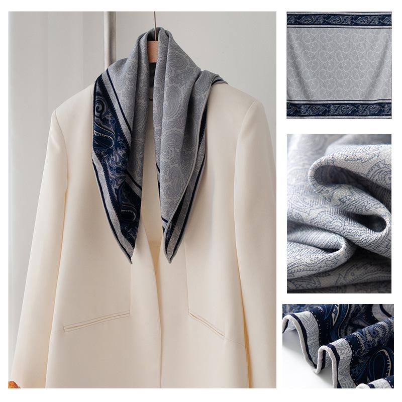 Elegant Silk Wool Double-Sided Shawl - Versatile Autumn & Winter Scarf