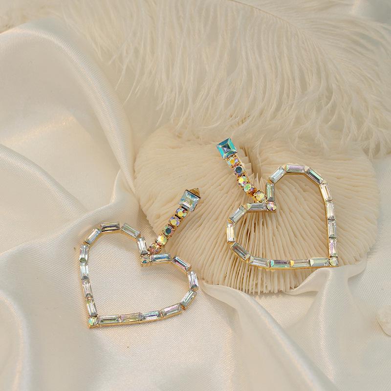 Colorful Retro Gemstone Heart Stud Earrings - Fashionable, Versatile, Light, and Exaggerated Design for Women.