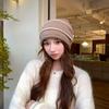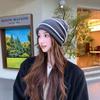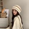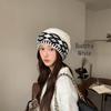 Căciulă tricotată din lână cu dungi pentru femei - Căciulă de pescar caldă de iarnă cu protecție pentru urechi și design plușat care acoperă capul.