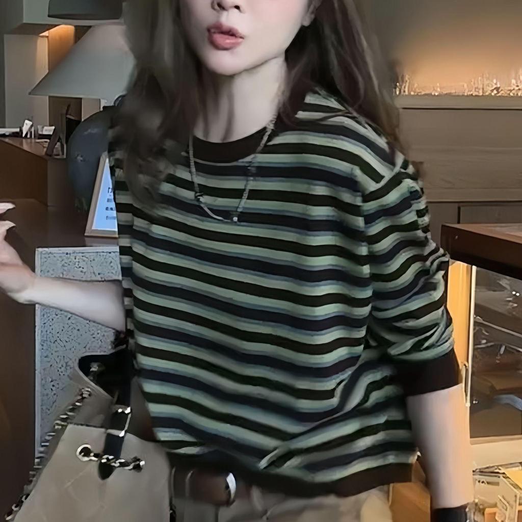 Elevate your wardrobe with this stylish long-sleeve top, featuring a unique Korean retro color block design in a rich velvet green. The elegant striped pattern and turn-down collar create a timeless look, perfect for both casual outings and more formal occasions. Crafted from a comfortable spandex blend, this top offers both flexibility and a flattering fit, ensuring you stay chic and comfortable all day long.