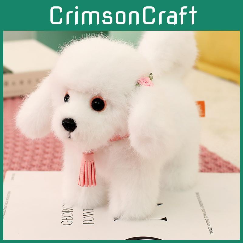 This realistic stuffed dog figurine features high-quality plush material with soft PP cotton filling, providing a lifelike appearance and tactile comfort, it supports gentle handling and display. Ideal for children's playrooms, home decor, or gift collections, it resists common wear for lasting use. Wipe clean with a damp cloth to maintain its appearance.