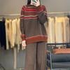Stay cozy and stylish with this elegant sweater and long pants set, featuring a timeless argyle and ethnic-inspired color block design. Perfect for autumn and winter, this set is crafted entirely from high-quality wool, providing warmth and comfort during colder seasons. The intricate pattern across the sweater offers a vintage touch, while the accompanying long pants ensure a complete and fashionable ensemble. This set is a perfect choice for those who appreciate classic style with a unique twist.