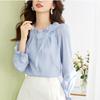 Bluză dulce de șifon pentru femei toamna 2025 cu mâneci bufante și decolteu în V cu fundă