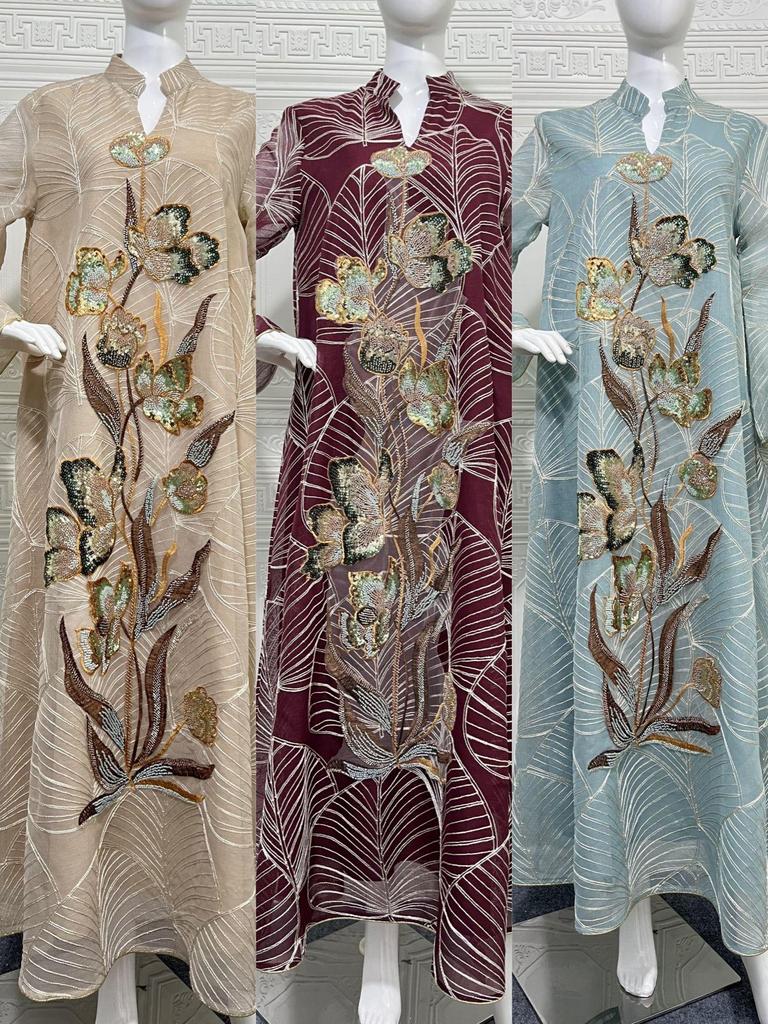 This elegant abaya dress showcases Dubai's iconic style, featuring a beautifully embroidered mesh design. Crafted from high-quality polyester, it is lightweight and comfortable, making it perfect for both special occasions and everyday wear. The intricate embroidery adds a touch of sophistication and charm, ensuring you make a stunning statement wherever you go.