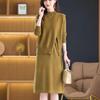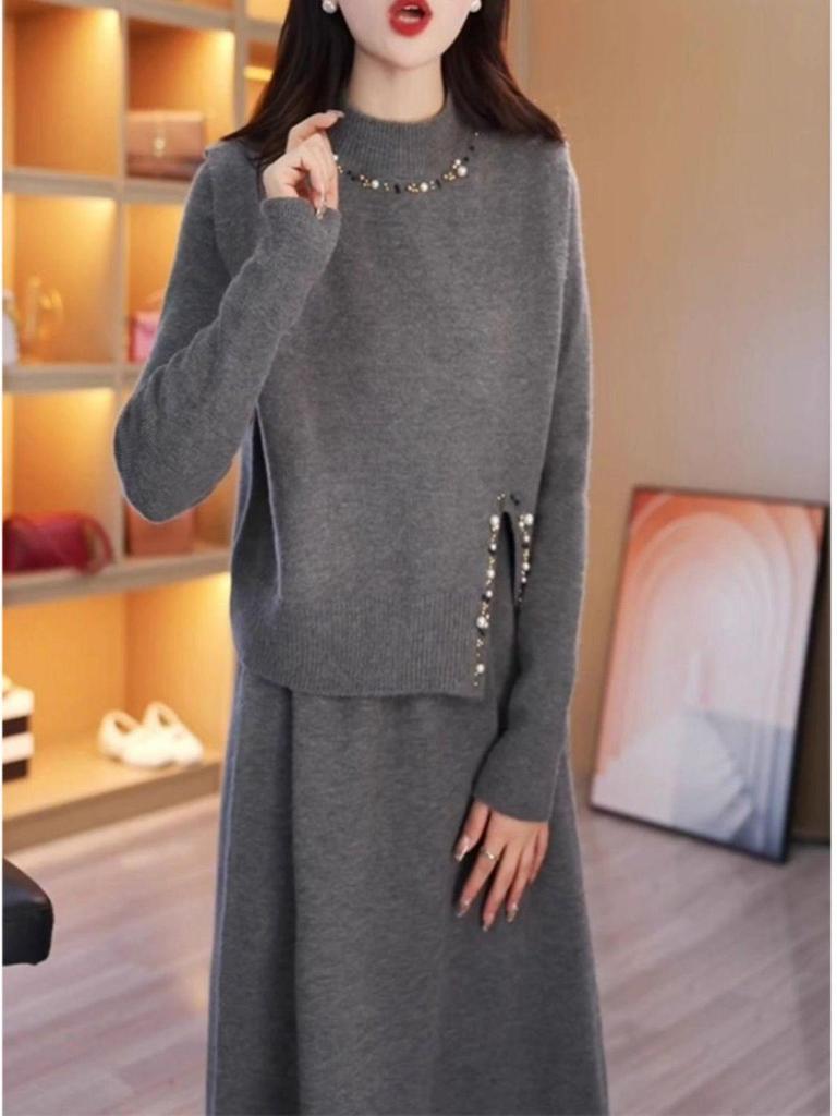 Rochie tricotată cu mărgele, lungime medie, din două piese - Toamnă/Iarnă 2025, Stil coreean
