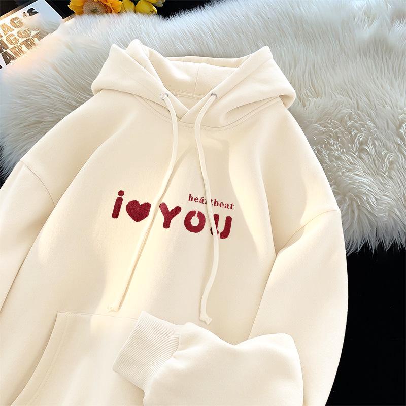 Women's Korean-Style Fleece-Lined Hoodie - Milky Fufu, Loose Fit, Skin-Whitening Effect, Ideal for Autumn/Winter
