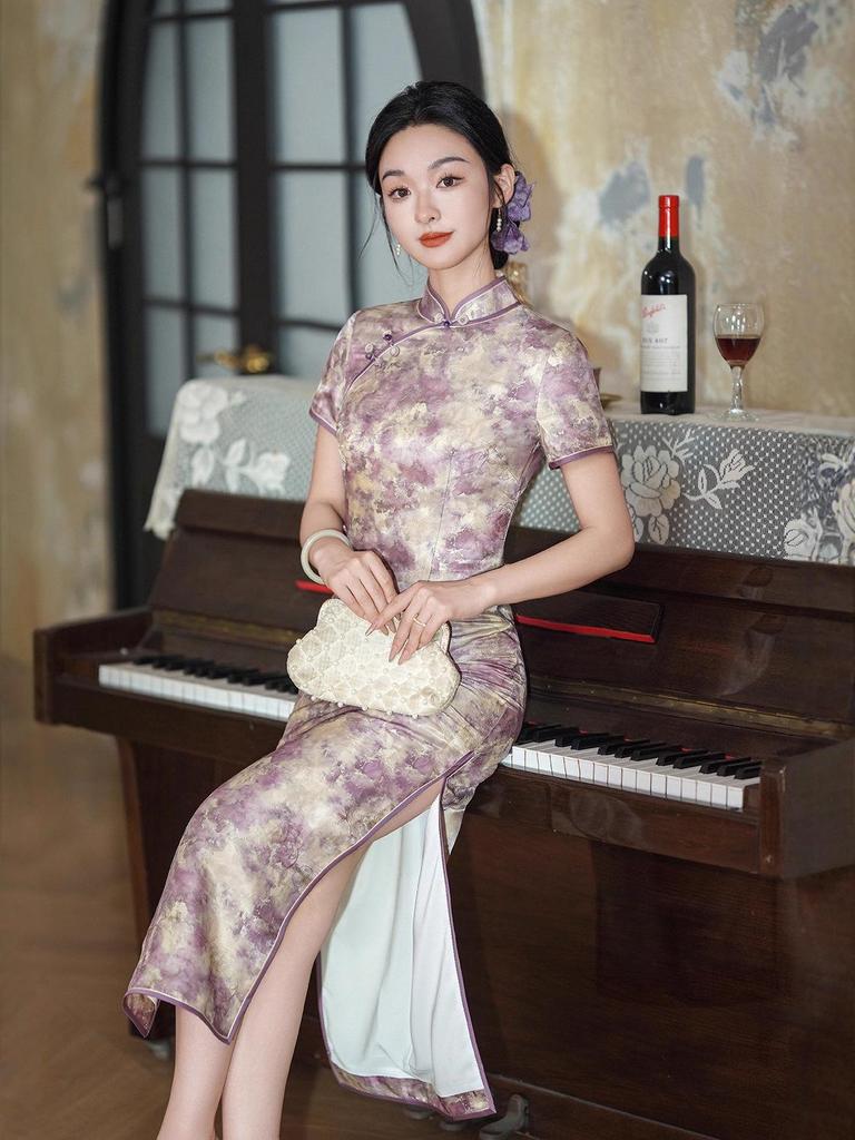 Experience the elegance and modern flair of this high-end mulberry silk short-sleeve cheongsam. Designed with a slimming silhouette, this piece combines traditional charm with contemporary style. Crafted entirely from luxurious silk, it offers a soft, sumptuous feel against the skin, ensuring utmost comfort during wear. Perfect for summer occasions, this cheongsam stands out with its vibrant pink hue, making it a stunning addition to any wardrobe.