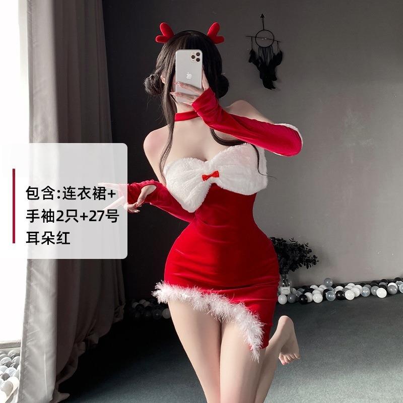 Sex Underwear Christmas C Costume Set Red Bow Bevel Hip Wrap Skirt New Year's Day Performance