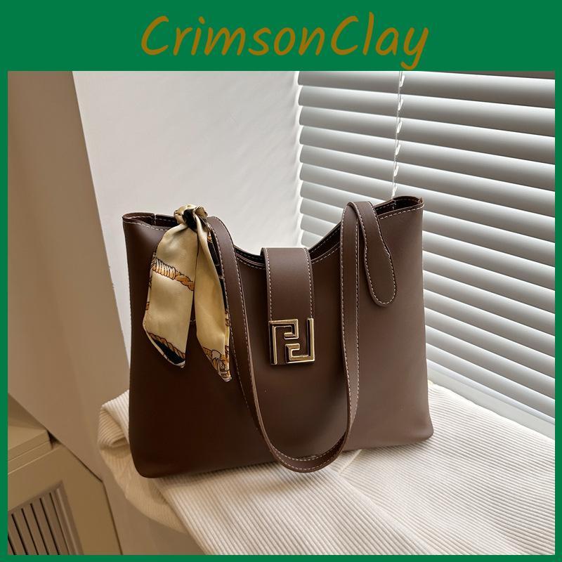 Large Simple Capacity Shoulder Bag With Solid Color Design And Decoration Scarf