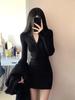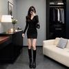 Black V-Neck Knitted Bodycon Dress – Women's Short Sexy Autumn/Winter Layered Base Dress