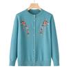 Spring & Autumn Embroidered Knit Cardigan - Round Neck, Long Sleeve, Perfect for Middle-Aged & Elderly Women's Outerwear
