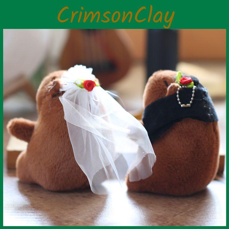 Wedding Capybara Cute With Rose Mesh Headwear Plush Fill Toy Keychain Pendant