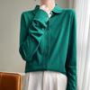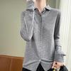 2025 Early Autumn Merino Wool Polo Collar Knit Cardigan, Long Sleeve Solid Color, Loose Fit Versatile Shirt