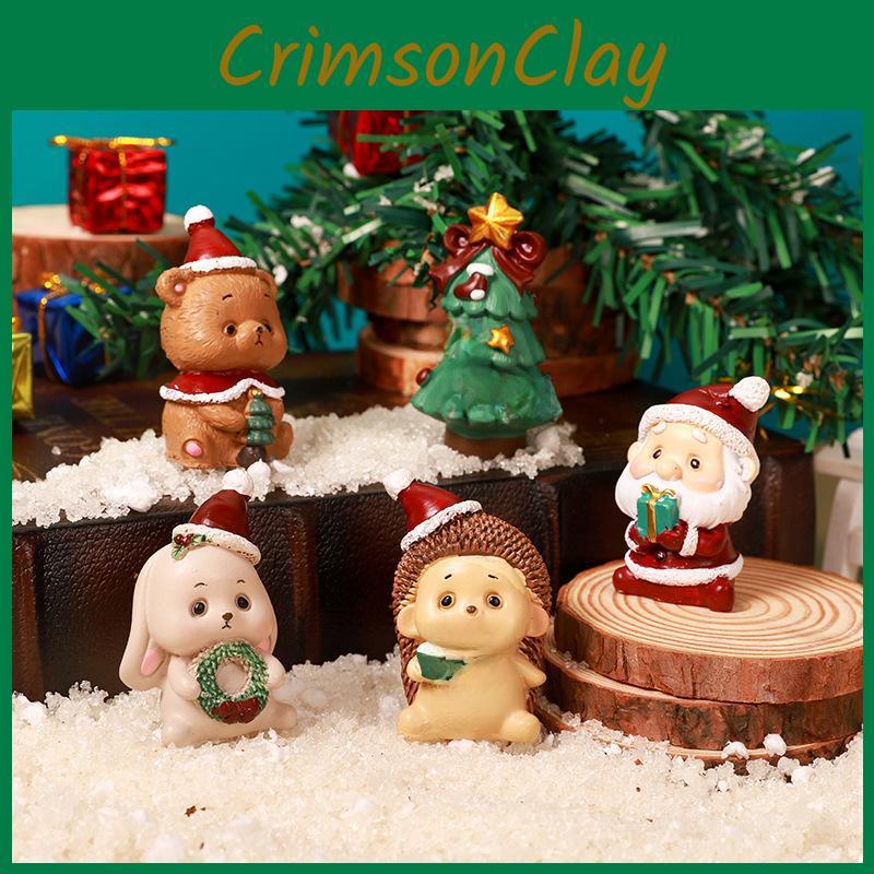 Christmas Animal Resin Figurine Set Santa Claus Tree Decor Kids Birthday Gift