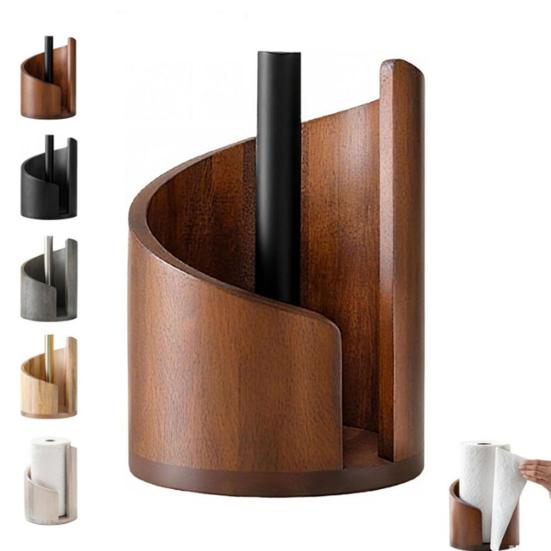 Wood Paper Towel Holder One-Handed Operation Easy Access Paper Towel Stand Farmhouse Kitchen Decor Accessory