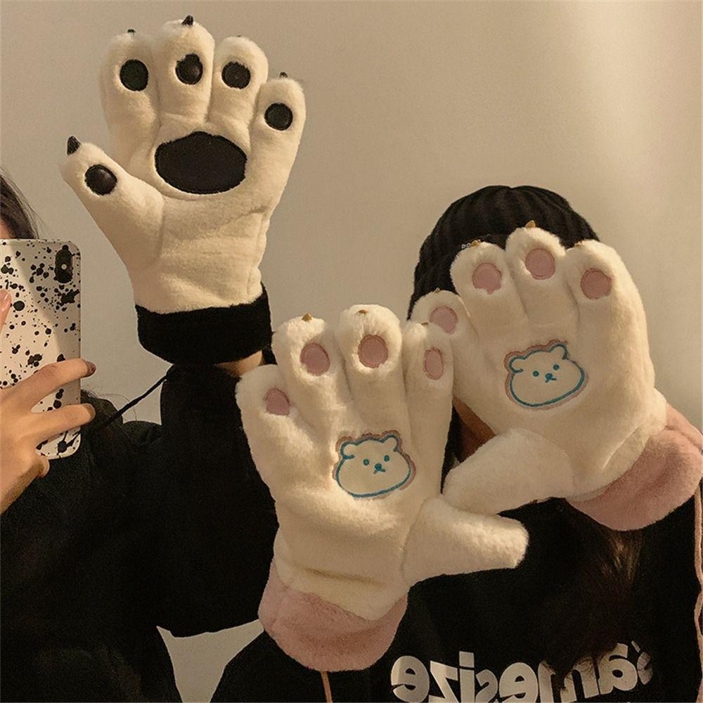 Soft Bear Paw Gloves Winter Warm Fluffy Fleece Gloves Fashion Plush Gloves for Women Girls