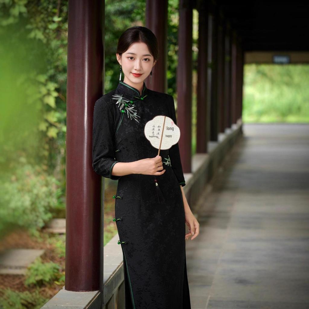 Introducing a stunning new addition to your wardrobe: a high-end embroidered cheongsam designed specifically for ladies' daily wear. This exquisite piece showcases a modern twist on traditional elegance with its intricate embroidery details that stand out beautifully against the luxurious jacquard and polyester material. The dress combines style and comfort, making it ideal for both casual outings and more formal occasions, ensuring you look effortlessly chic every day.