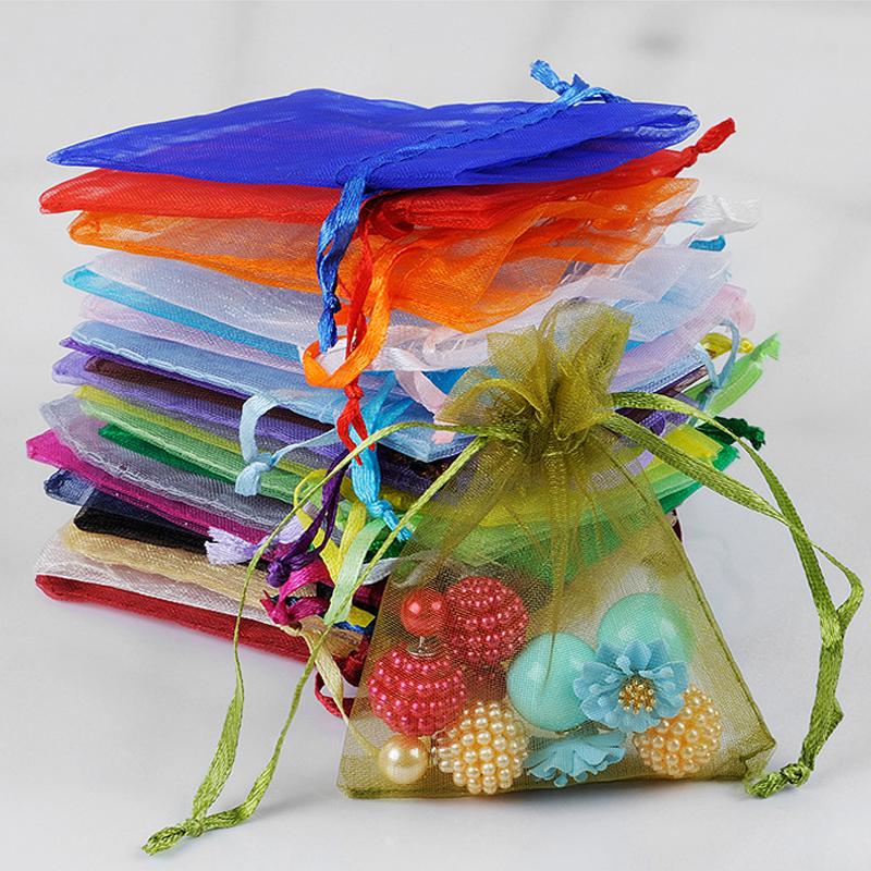 100PCS Various colors and sizes Organza Drawstring Bag Jewelry Packaging Bags Wedding Gift Storage Drawstring Pouches