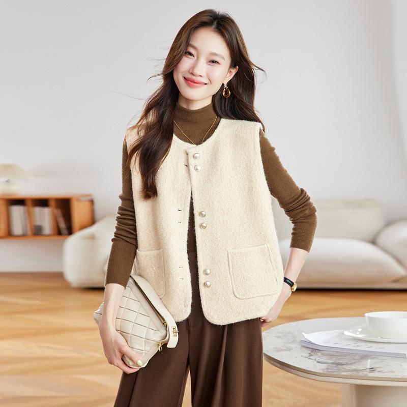2025 Autumn Women's Fashionable Round Neck Knitted Cardigan Vest - Versatile Petite Sweater Top