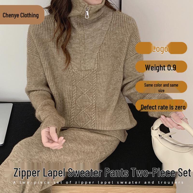 2025 Autumn/Winter High-Neck Knit Top & Wide-Leg Pants Set