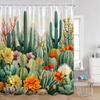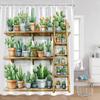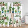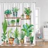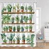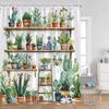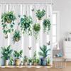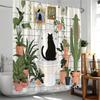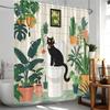 Plant Shower Curtain Cats Green Potted Plants Leaves Cat on the Toilet Modern Bathroom Decor Polyester Fabric Bathtub Curtain